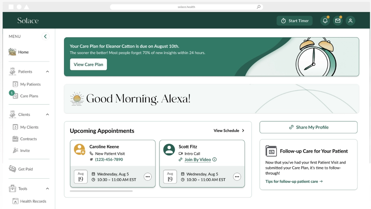 By absorbing the administrative burden, Solace enables advocates to onboard quickly, operate at high capacity, and focus their time on judgment, guidance, and trust. The result is a longitudinal care model that scales with strong unit economics, delivering faster time-to-care and measurably better outcomes.
